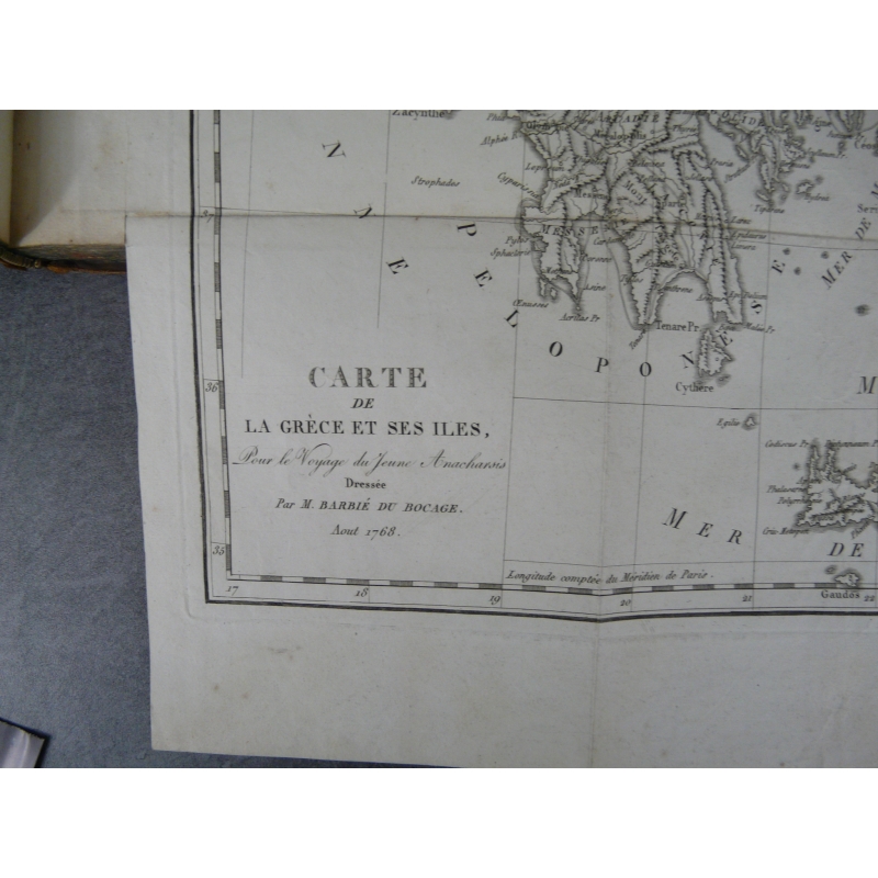 Bien complet de la grande carte dépliante de Grèce à la date de 1768, des plans d'Athene de la vue de platon des temples etc... la carte dépliante du monde ancien est à la date de 1788.