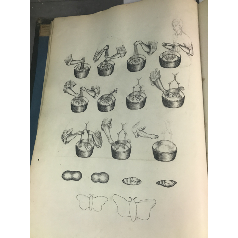 Libraire d'ancien en région lyonnaise depuis de nombreuses années j'ai vu assez souvent des cours de tissage, mais de cette qualité de soin et de cette dimenssion, c'est le premier, il est vraiment au dessus des autres réalisations rencontrées. Tant par la précision des dessins, la finesse de l'écriture et la qualité des échantillons présents. Environ 110 echantillons de soierie.