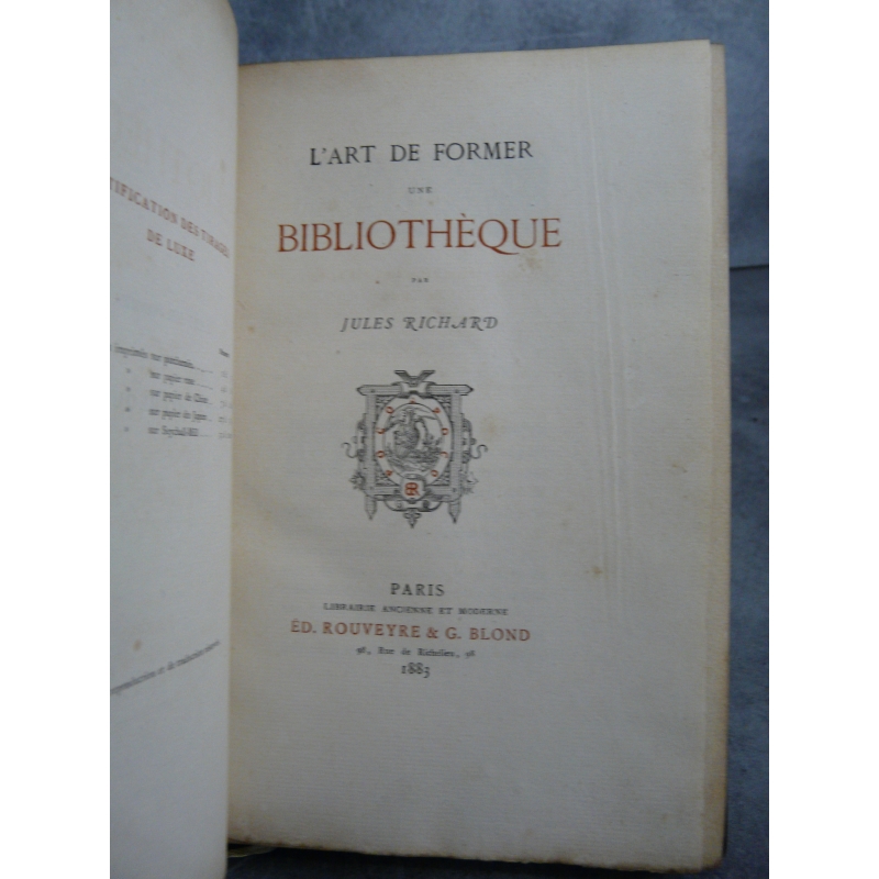 Jules Richard L'art de former une bibliothèque Rouveyre et blond 1883 maroquin signé Ex libris.