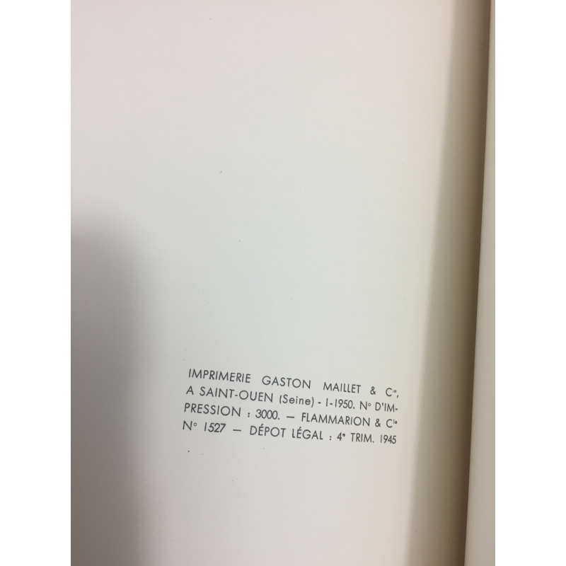 Ernest Flammarion Editeur 1950, Un volume grand in 8 28,5 x 24,5 cm de 340 pages plus table. Reliure demi maroquin bleu ciel, plat papier cuve gardes bleu ciel , reliure état de neuf très certainement réalisée à l'époque par l'atelier de reliure Lopez Lyon 6e maintenant disparu.