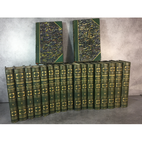 Paris Furne et compagnie Libraires éditeurs 1844 -54 19 volume in 8 23,5 x 15 cm demi chagrin vert à coins, dos ornés de caissons dorés, double filet doré sur les plats encadrant un papier main verni du meilleur effet. Couvertures imprimées majoritairement conservées. Gravures et cartes . Bien complet des deux cartes dépliantes fin de volume 17 et 19 . quelques rousseurs parfois un peu plus importantes, mais très bel exemplaire dans l'ensemble, souvent non coupé et surtout quelles reliures...coiffes parfaites coins bien vifs