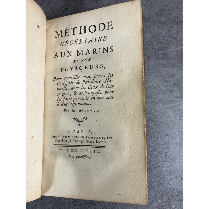 Marvye Méthode nécessaire aux marins et voyageurs pour recueillir avec succès les curiosités d'histoire naturelle Reliure aux armes de Louis Henri de bourbon Condé.