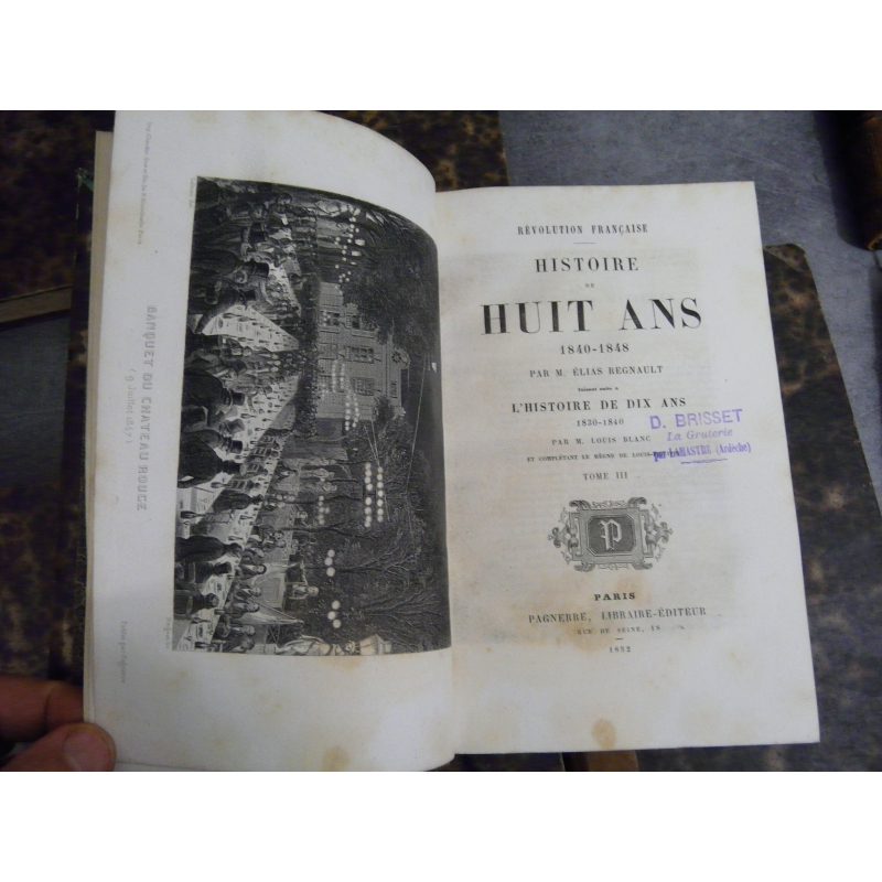 Regnault Revolution française histoire de huit ans 1840-1848 faisant suite à l'histoire de dix ans de Louis Blanc Paris Pagnère 1851 3 volumes in 8 de 480, 468, 493 pages .