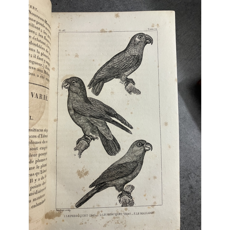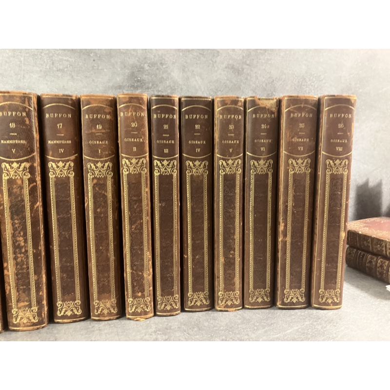 Buffon Cuvier 26 volumes 221 planches gravées mammifères et oiseaux bel ensemble avec gravures dont portraits de Cuvier et de Buffon.