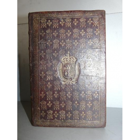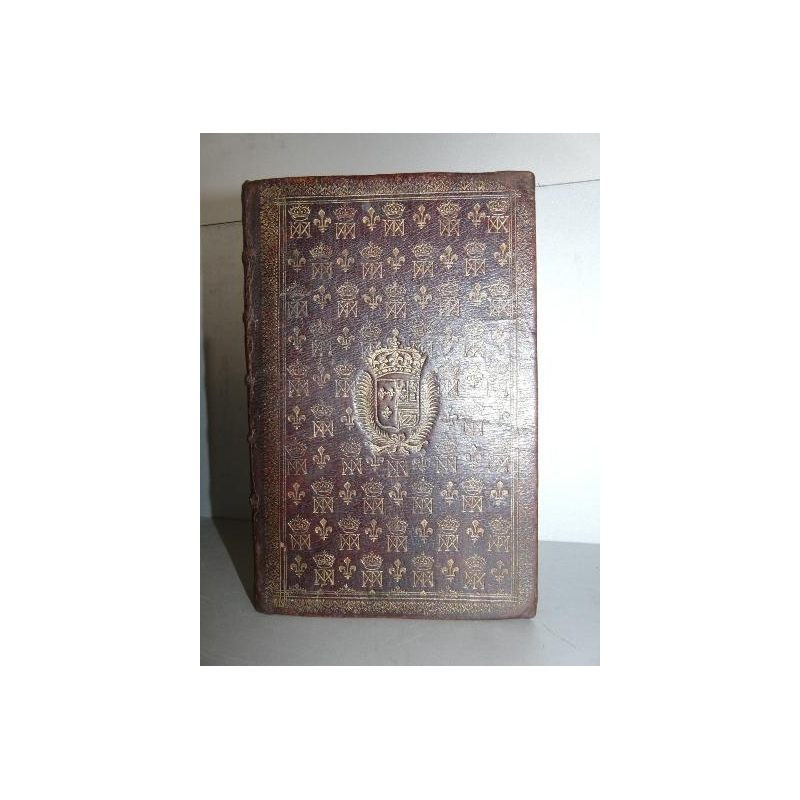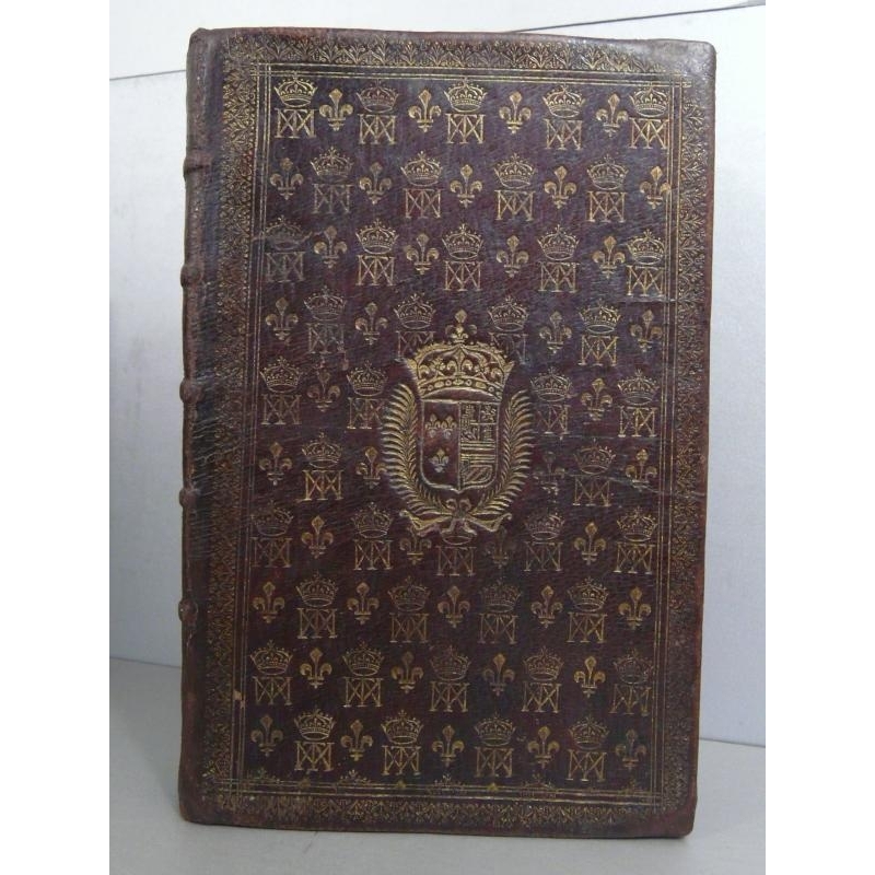 L'office de la semaine saincte selon le bréviaire romain,Paris André Soubron libraire ordinaire de la Reine.1659 Un volume in8 dimension de la reliure 21 x 14 cm , plein maroquin vieux mmargaux, semi alterné de fleurs de lys et du chiffre MTA couronné,Grandes armes aux centre des plats. Chiffres couronnés au dos. Toutes tranches dorées. Exemplaire réglé, impression en rouge et noir. Quelques salissures au titre, aux derniers feuillets, corp d'ouvrage un peu manipulé avec quelques salissures.