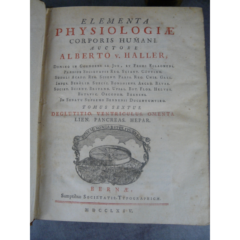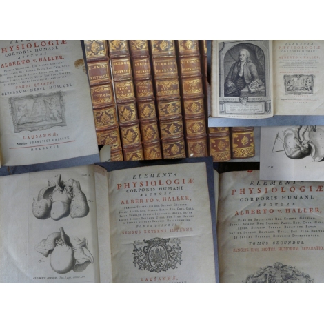 Haller Albrecht von Elementa Physiologiae corporis humani Editions originales 1757-65 Médecine 7 volumes in quarto