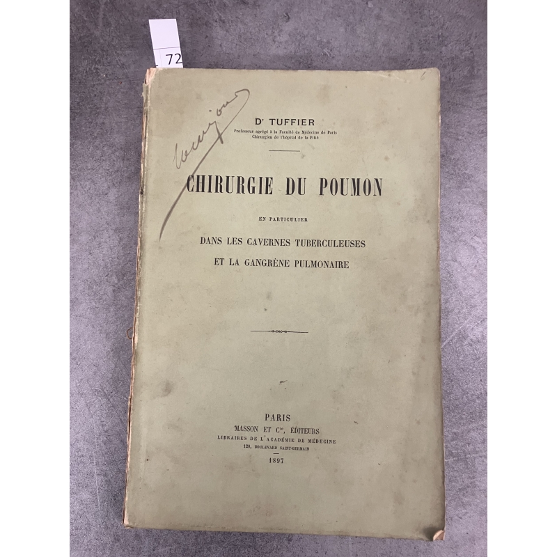 Médecine Tuffier Chirurgie du poumon en particulier cavernes tuberculeuses et gangrène pulmonaire .1897