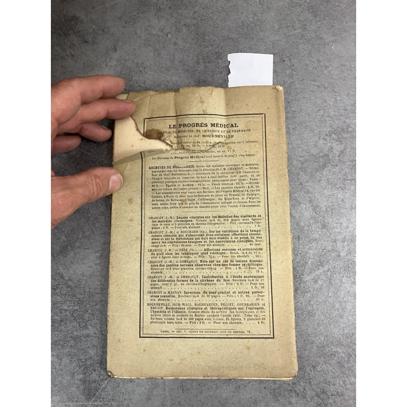 Paris Progrès médiacal , Lecrosnier 1889 1 volume 23 x 14,5 cm de 107 pages , nombreuses illustrations . 4eme de couverture déchirée avec manque