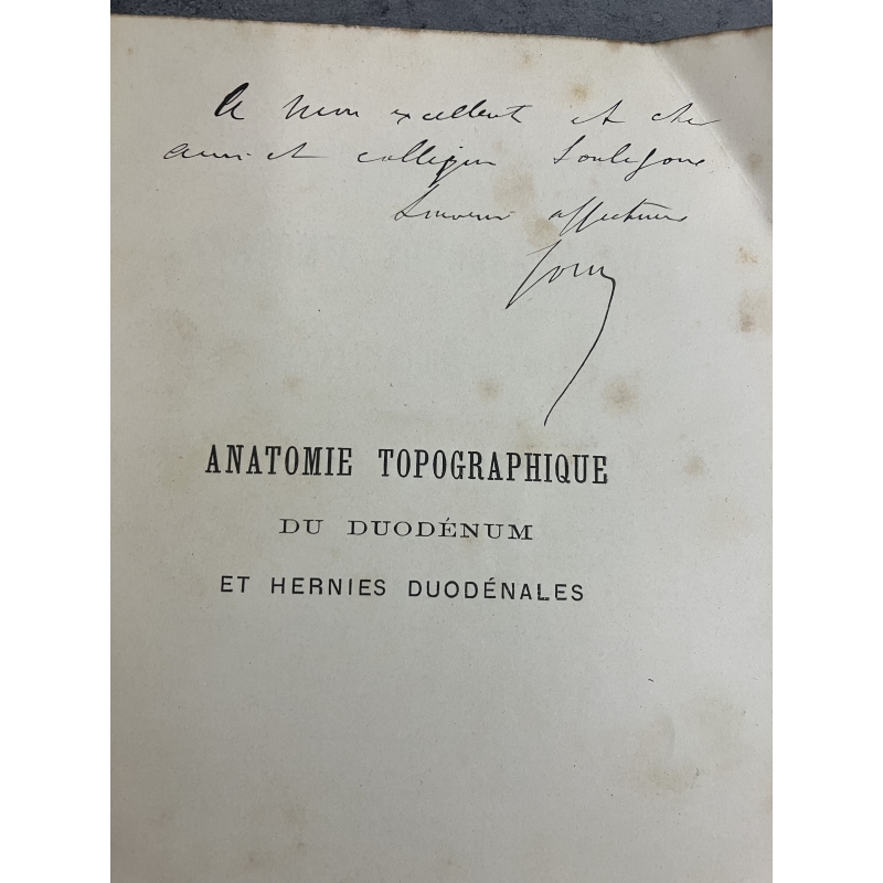 Médecine Jonnesco Anatomie topographique du duodenum et des hernies duodenales 1889 Envoi à Souligoux