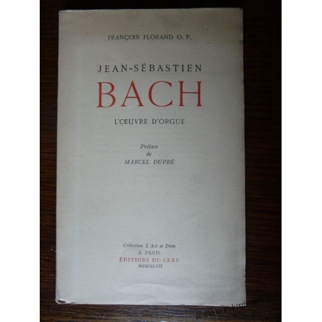 JEAN-SÉBASTIEN BACH L'UVRE D'ORGUE par François-Roland O.P.suivi d'un essai sur l''expression musicale du sentiment religieuxÉditions du Cerf, Paris 1947248pagesFormat : (23x14)Reliure brochéeBon étatCommentaire et remarque :quelques belles photographiesLivre illustré d'exemples sur partitionsJoint un feuillet d'un récital de concert de Jean - Jacques Grunenwald, interprétant des uvres pour orgue de Bach, plus un feuillet tiré du journal de "La semaine du mélomane".