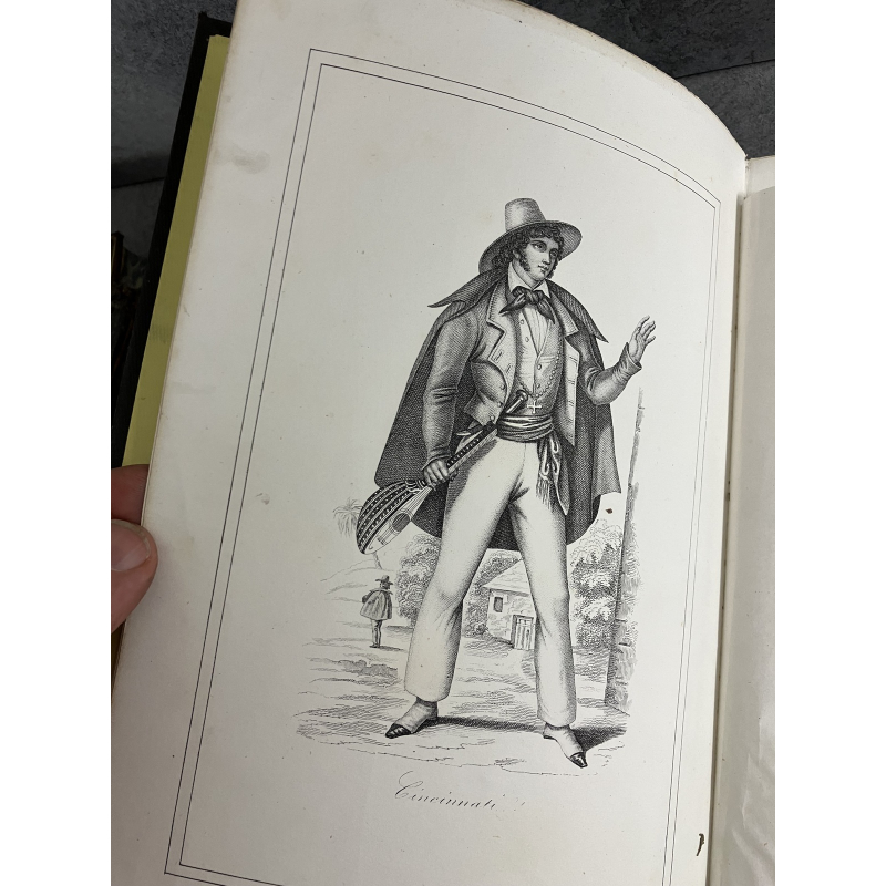 Limoges Martial Ardant 1856 1 volume In 4 cartonnage de 28,5 x 19 cm de 208 pages et 23 planches hors texte en noir de différents costumes . Pleine percaline polychrome de l'éditeur avec des rehauts de vert et de rouges, tous cela restant bien frais. Toutes tranches dorées