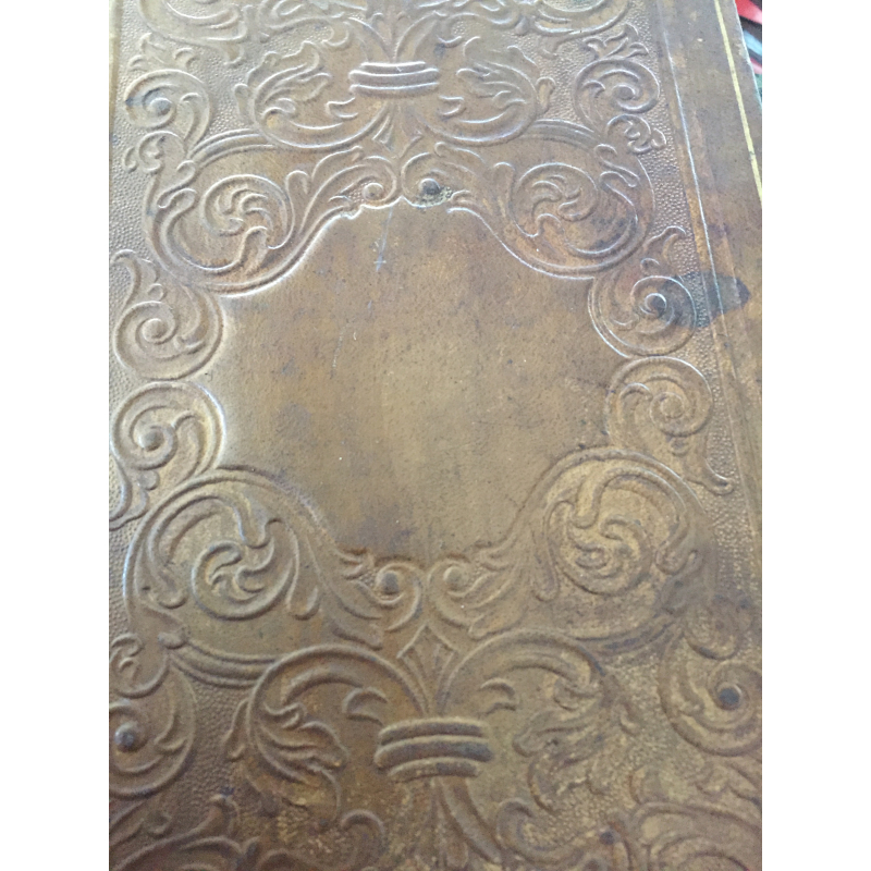 Paris : L. Hachette, 1843. In-8,22,5 x 14 cm de (4)-VIII-448 pages et 1 planche hors texte. reliure de l'époque en veau estampé de larges plaque romantiques à froid, dos lisse orné en long de fers romantiques dont un fer à l'oiseau. dos passé , coiffes et coins usés, couture solides. Quelques rousseurs, le livre reste assez frais elles sont surtout sur la planche dépliante.
