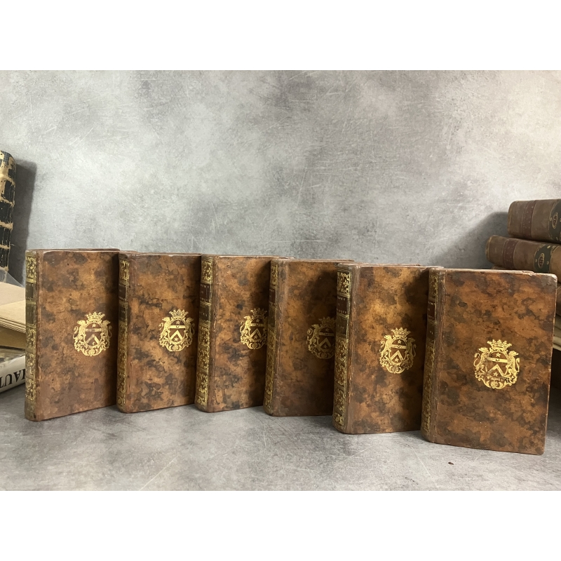 Reliure de l'époque pleine basane dos lisses ornés de caissons uniformes sur l'ensemble des reliures . Fort bel exemplaire, restaurations d'entretien très disrètes a la reliure, coiffes et coins vers 1980 , avant l'achat en librairie spécialisée par le précedent propriétaire et qui ne lui avait pas été signalées.