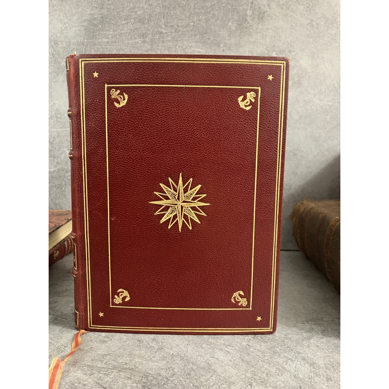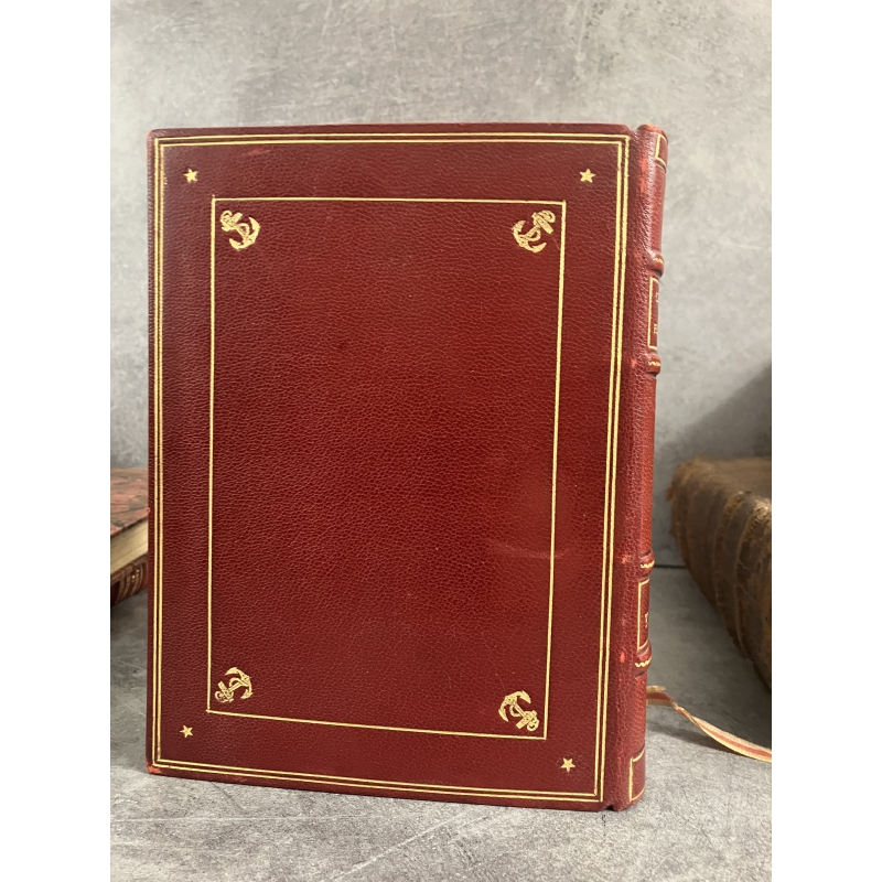 Paris Pierre lafitte 1 volume in8 21 x 16 cm de 516 pages. Reliure Plein maroquin rouge, dos à nerfs sautés doré et ornementé d'une Ancre en son centre, date en pied. Double Filets dorés en encadrement des plats, simple filet doré plus au centre des plats avec 4 Ancres en coins filets sur les coupes une rose des vents dorées au centre du premier plat, en contreplats large encadrement de maroquin encadrés de filets dorés et au semi d'étoiles ancre marine en chaque coin . Papier main en centre du plat et en garde. Tranchefiles à la main, t^te doré lingot. Couvertures et dos du brochage conservés. Exceptionnel exemplaire. Reliure de très bonne facture par Guetant relieur à Lyon dans cette période. Ce relieur travaillait pour toutes les bonnes familles de la région lyonnaise et stéphanoise.